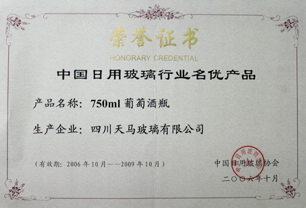 中國(guó)日用玻璃行業(yè)名優(yōu)產(chǎn)品-葡萄酒瓶